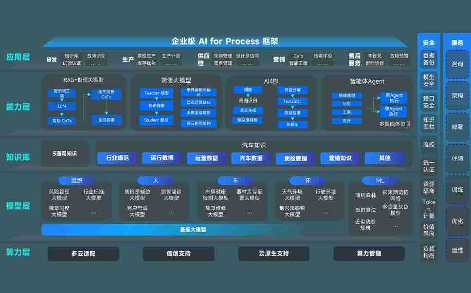 先锋娱乐问学智车解决方案是一套基于AI技术的汽车行业智能化系统,,覆盖从底层算力到顶层AI应用的全栈方案。。。方案由算力层、、模型层和应用层组成:算力层,,方案支持多种一体机配置,,,,具备云端灵活部署、、、多云适配以及动态优化计算资源的能力;模型层,,,,先锋娱乐问学平台版提供了企业级AI应用一站式构建与管理平台,,,支持基于后训练强化技术的汽车企业专属模型的训练、、评测和运营;应用层,,,先锋娱乐问学DeepSeek版提供包括超级员工、、、智能招采、、、智能营销、、智能客服、、、、AI for BI等一系列解决方案,,,,可助力汽车行业实现数字化转型,,让管理更智能、、、、响应更敏捷。。。。